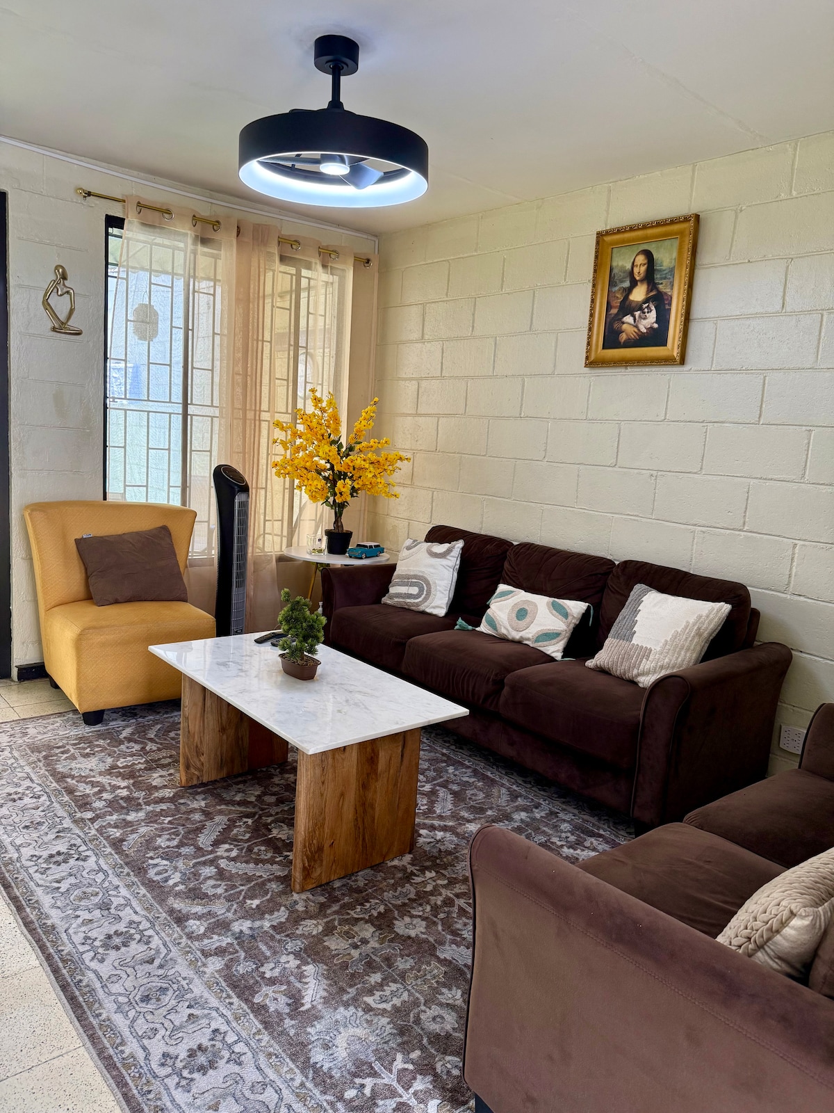 Descubre la comodidad de hospedarte en este alojamiento moderno, amplio y lleno de luz natural, ideal para familias,es una acogedora vivienda en SOYAPANGO equipada con todo lo que necesitas para sentirte como en tu hogar . Patio verde/aire acondicionado en casa completa /2 baños ✔️NO hay agua caliente /Cocina equipada con sal , aceite platos ,vasos ,tazas,copas , sartenes,cafetera, tetera ,café -té. licuadora ,grill, tostadora / lavadora y secadora ,jabón para lavar la ropa ,plancha, cisterna
