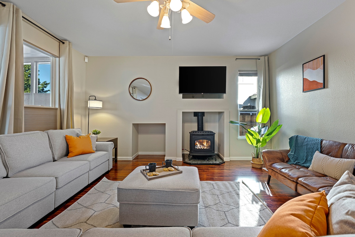 3 katil California King baharu! Nikmati kediaman santai yang terletak di pusat bandar ini. Halaman belakang sesuai untuk perhimpunan kecil dengan perabot patio yang selesa dan tab mandi air panas 4-6 orang yang baharu. Unit AC utama dengan unit AC mudah alih di setiap bilik untuk membantu kekal sejuk pada musim panas. Akses pantas I-80 untuk lawatan sehari anda ke Lake Tahoe, Pyramid Lake, atau Virginia City. Nikmati acara musim panas Reno - Reno Rodeo, Hot August Nights, Rib Cookoff, Street Vibrations, Belon dan Lumba Udara.