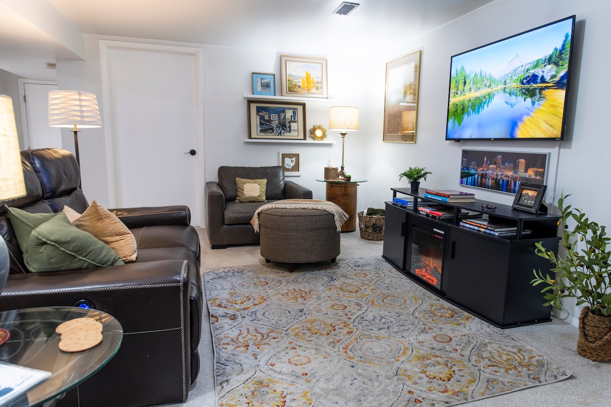 You will be staying in a relaxing, freshly renovated basement apartment with air fryer, hotplate, microwave, toaster, coffee maker & private entrance. Our space is family and business friendly conveniently located just 5 miles from Interstate 71, 10 miles to Mid Ohio Race Track, Snow Trails, Malabar farm, & MANSFIELD Reformatory. Onsite parking and motorcycle friendly with covered parking for motorcycles only. Our home sleeps up to 3 guests with a queen bed and futon. Hot tub available!