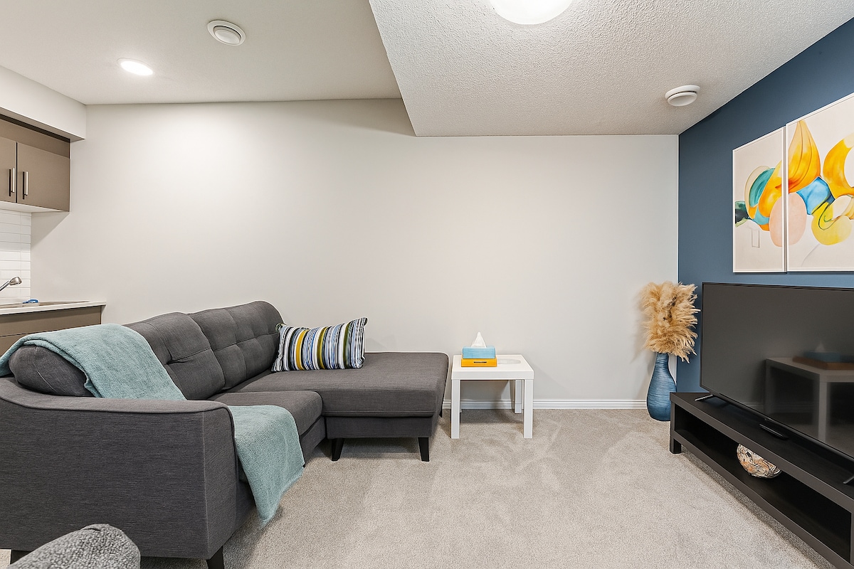 Suite ruang bawah tanah yang selesa di kejiranan yang tenang dan selamat di West Edmonton 8 minit memandu dari West Edmonton Mall, 3 minit memandu ke River Cree Resort & Casino dan Costco. Suite ini dilengkapi dengan penebat bunyi maksimum untuk keselesaan tetamu. Dapur lengkap dengan kaunter kuarza dilengkapi sepenuhnya. Bilik tidur dilengkapi dengan katil queen. Terdapat katil sofa rollaway yang bersaiz single/twin juga. Tempat letak kereta tepi jalan tersedia untuk tetamu. Ini adalah kemudahan tanpa haiwan peliharaan dan tidak merokok.