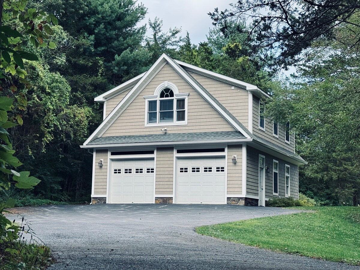 Bersantai di studio yang selesa di dalam hutan yang damai. Sentuhan berkualiti tinggi yang lazat akan membuat anda berasa selesa dengan segera! Ini adalah ruang yang ideal untuk sehingga 2 orang dewasa dan sehingga 2 kanak-kanak. Kami tinggal di tingkat atas & menawarkan daftar masuk sendiri. Satu penemuan yang jarang ditemui di Hudson Valley, kejiranan kami kebanyakannya rata, dengan jalan yang boleh berjalan kaki, tenang, dan memerhati burung yang sangat baik. Ia adalah perjalanan basikal yang mudah untuk menyambung ke sistem denai kereta api seluruh negeri yang luas & semua yang ditawarkan oleh Mohonk Preserve.
