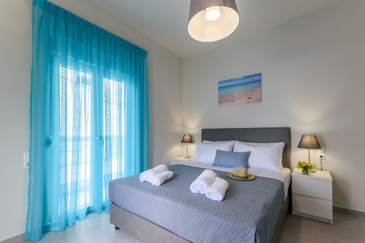 Apartmen selesa 45sq ini sesuai untuk 2-3 pengunjung. Apartmen ini mempunyai dua beranda dengan pemandangan yang tidak terhalang ke arah laut, taman dan gunung juga. Apartmen cemerlang ini termasuk dapur kecil terbina dengan peralatan, yang boleh bertukar menjadi "tidak kelihatan" jika tidak perlu. Hiasan dalaman berperabot lengkap dan ruang pelan terbuka yang bergaya menjadikan penginapan santai dan karya seni kami di dinding daripada artis-artis Yunani terkemuka memberikan suasana tempat. Apartmen canggih ini sesuai untuk pasangan.