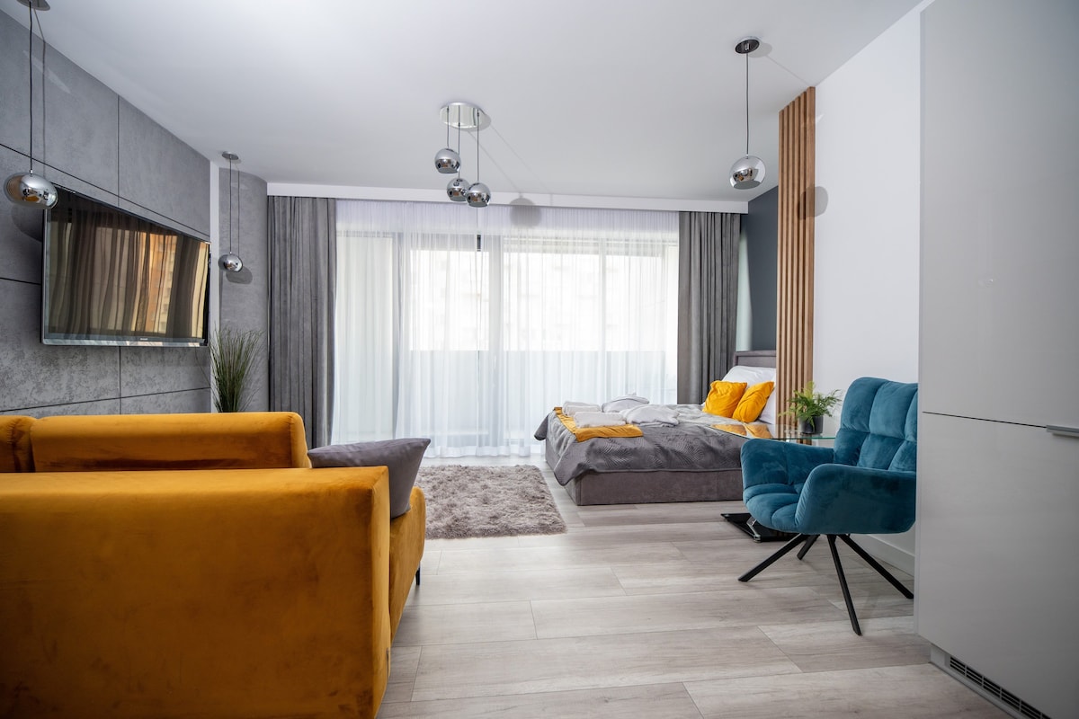 Apartament na 16. piętrze w samym centrum Szczecina to idealne miejsce na relaks. Pokój wyposażony jest w łóżko king size, telewizor i kominek elektryczny, który tworzy przytulny klimat. Aneks kuchenny posiada piekarnik i płytę indukcyjną, a łazienka – nowoczesny prysznic. Goście mogą korzystać z tarasu widokowego na 27. piętrze oraz strefy wellness z basenem, jacuzzi i dwiema saunami, zapewniającymi pełen komfort i odprężenie.