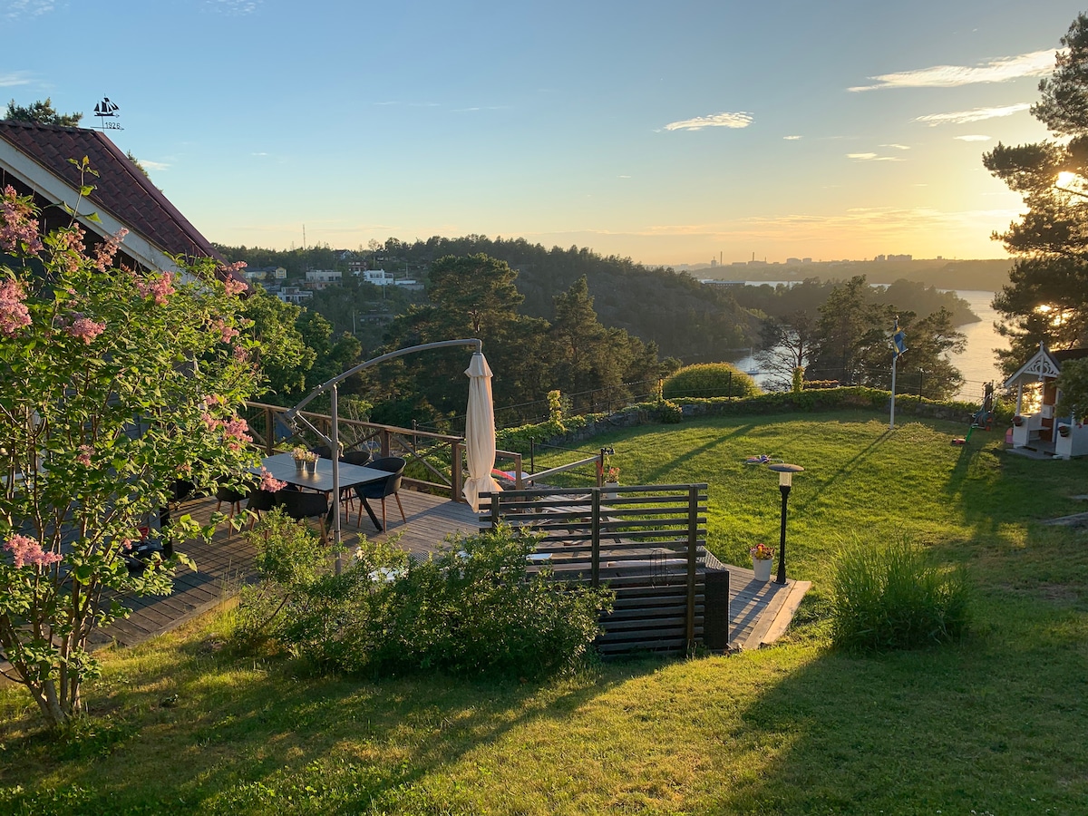 Selamat datang ke rumah kami dengan teres besar di selatan dan pemandangan laut. Rumah seluas kira-kira 65 meter persegi ini terletak di Tynningö, sebuah pulau berhampiran Stockholm. Rumah ini mempunyai 4 katil: bilik tidur dengan katil kelamin dan bilik tidur dengan katil dua tingkat. Terdapat sebuah rumah di taman dengan 2 katil yang boleh digunakan pada musim panas. Dapur lengkap dengan ruang makan untuk 6 orang dan bilik mandi kecil dengan tandas, besen dan pancuran mandi. Ruang tamu dengan pendiangan dan pemandangan laut. Teres dengan meja untuk 6 orang dan barbeku. Taman Besar.