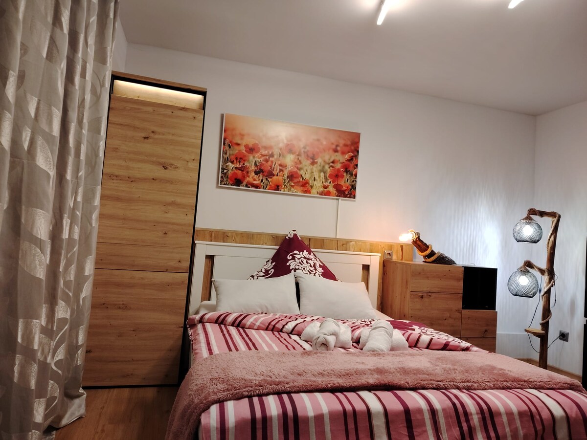 Bilik 60m ² yang diubahsuai dengan indah yang dilahirkan semula pada tahun 2024. Ia adalah ruang bawah tanah tetapi masih tenang, cerah dan penuh dengan alam semula jadi. Terletak di lokasi yang tenang, tetapi mudah untuk pengangkutan. Kami ada segala yang anda perlukan. Bilik tidur yang cantik dengan cahaya matahari. Penginapan kami menawarkan semua yang anda perlukan untuk memasak. Pancuran mandi, WiFi, perabot kayu yang kukuh, lavender yang cantik dari tingkap.Anda boleh berehat di teres persendirian.