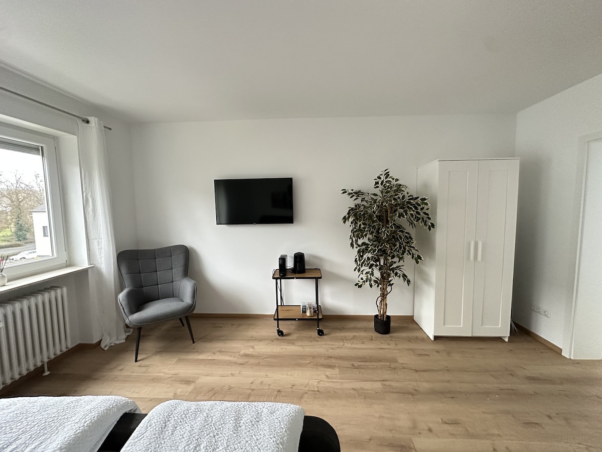 Apartmen loteng adalah bangunan baru dan mempunyai penebat haba yang baik. Sambungan ke pusat bandar boleh dicapai dengan pelbagai laluan bas (percuma pada hari Sabtu) atau berjalan kaki kira-kira 30 minit. Membeli-belah (Aldi, Denn 's, Edeka, dm, kedai roti, penjual daging, bank simpanan, farmasi) berada dalam jarak berjalan kaki dalam beberapa 100 m. Penemuan luas di dalam padang dan hutan boleh bermula selepas beberapa minit berjalan kaki.
