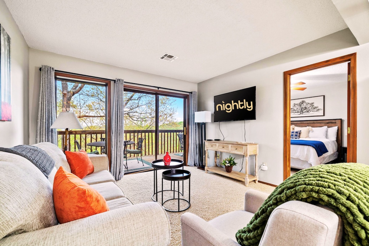 Selamat datang ke Rolling Hills Condo — Percutian Anda untuk Ketenangan dan Relaksasi! Penthouse 2 bilik tidur yang luas di Indian Point ini menawarkan pemandangan Table Rock Lake yang menakjubkan. Terletak dalam komuniti yang tenang, hanya beberapa minit dari tarikan terbaik Branson, kondominium ini menggabungkan keselesaan dan kemudahan-kemudahan kepada semua keseronokan, dengan pilihan untuk berehat dalam suasana yang damai. Kondo ini menampilkan katil dua tingkat king, queen, twin, dan sofa tarik keluar untuk ruang yang luas. Sesuai untuk keluarga atau rakan-rakan!