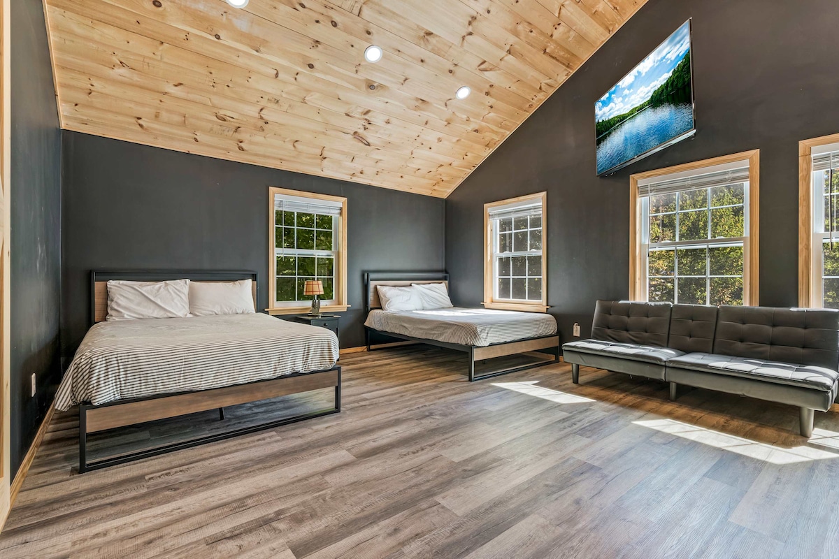 Pergi ke percutian tepi tasik yang tenang dengan dek terpencil yang diterangi matahari dan dok persendirian dengan pemandangan Sunrise Lake yang luar biasa, serta tab mandi air panas untuk 4 orang, dan kemudahan bermusim seperti bot kayuh, dua kayak, papan SUP, meja api gas, pendingin udara pusat, dapur pelet, dan kasut salji. Nikmati aktiviti berhampiran seperti mendaki, melihat dedaun, bermain ski, dan melawat bandar-bandar yang indah, kebun anggur tempatan dan kilang bir — atau hanya berehat di persekitaran tepi tasik yang indah. Matahari terbenam yang luar biasa!