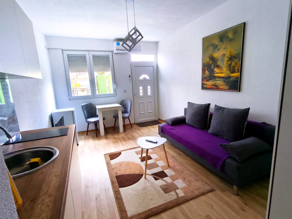 Menginap di apartmen 2 bilik tidur yang baharu dan sangat moden di pintu masuk Strumica. Terletak berhampiran restoran ikan popular Pilikatnik, hanya 15–20 minit berjalan kaki dari pusat bandar. Ciri-ciri termasuk balkoni dengan pemandangan gunung, tingkap besar, lif, tempat letak kenderaan percuma, A/C, Wi-Fi, TV pintar, dapur lengkap, dan bilik mandi bergaya. Semuanya baru — sesuai untuk penginapan yang selesa dan santai.