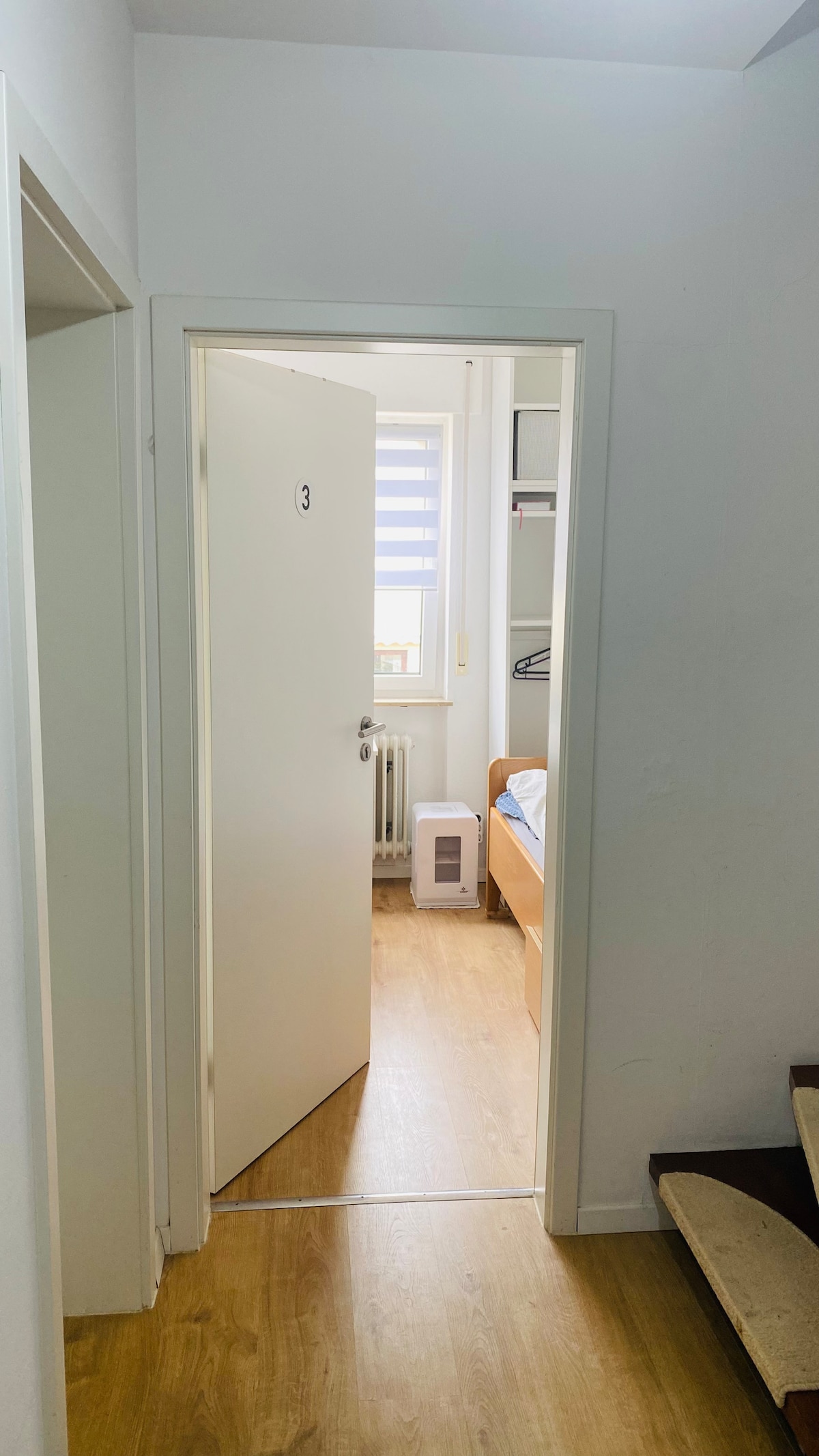 Dalam jarak berjalan kaki ke pusat bandar, di Lehenviertel Stuttgart, bilik kecil ini (14 m²), dilengkapi mengikut model British, terletak di rumah tetamu dengan jumlah 6 bilik. Ia menawarkan katil spring kotak double berkualiti tinggi, almari pakaian, meja dan kerusi, "dulang hospitaliti", TV skrin rata yang besar dan sudah tentu WiFi berkelajuan tinggi, serta bilik mandi kecil persendirian yang moden. Berhampiran penginapan terdapat kedai roti, dua kafe, kedai organik dan beberapa restoran yang bagus dan kedai-kedai kecil yang bagus.