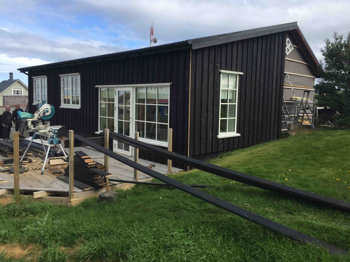 Kotej 37m2 yang cantik terletak di tengah-tengah Stykkishólmur, dengan pemandangan Breiðafjörður dari ruang tamu. Lokasi yang sempurna dan berjalan kaki singkat ke pelabuhan, restoran, kedai runcit dan kolam renang komuniti. Kotej yang kecil tetapi luas ini baru diubah suai dengan lantai kayu dan haba berseri bawah lantai geoterma. Bilik mandi dengan pancuran mandi, dan bilik tidur persendirian untuk dua orang. Loteng di atas boleh memuatkan 1-2 tetamu tambahan.