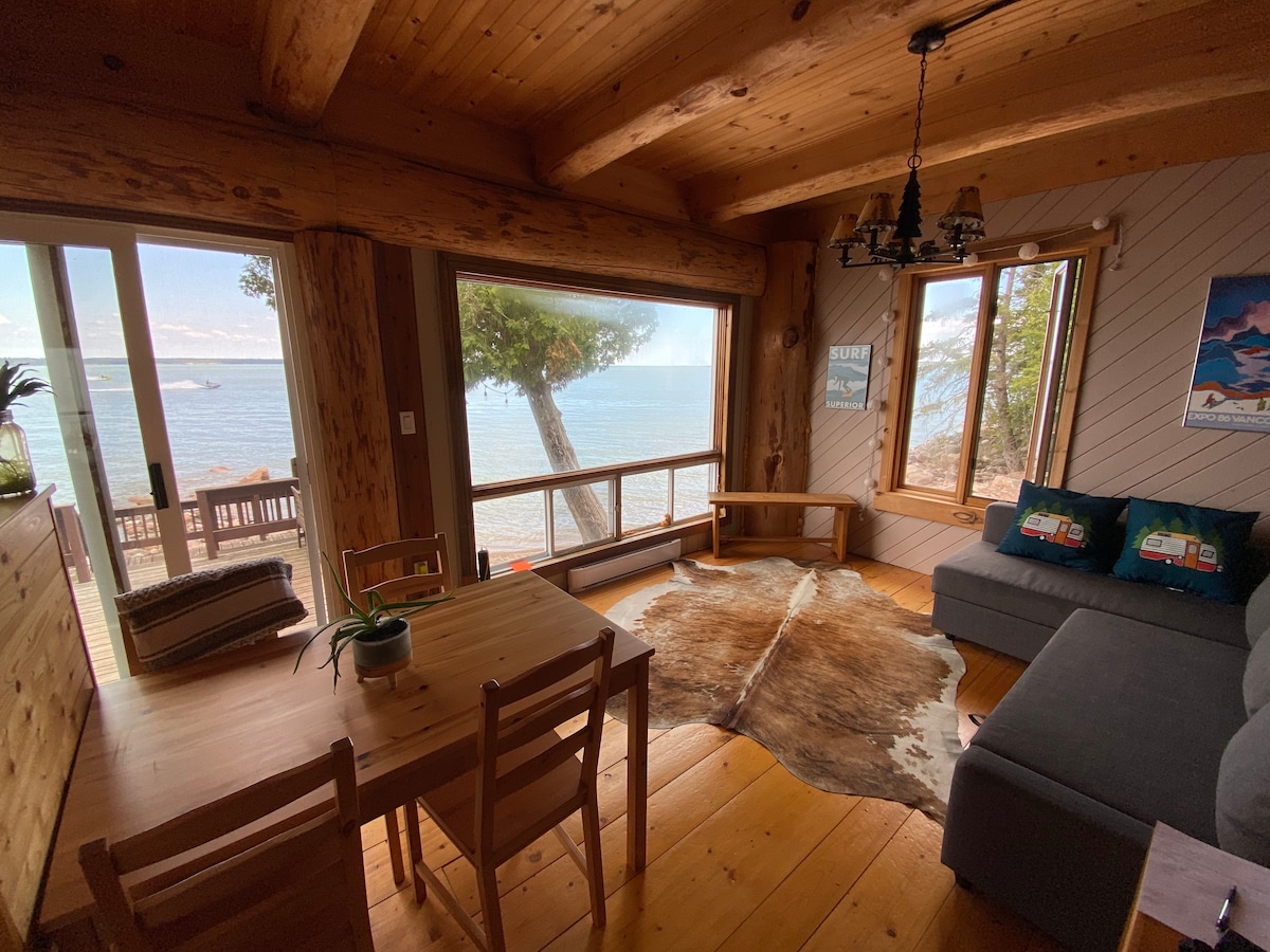 Kotej hadapan tasik mesra keluarga kami terletak 40km di timur Sault Ste Marie, ruang yang ideal untuk melarikan diri dan berehat. Kotej ini menawarkan 3 bilik tidur dan 1 bilik mandi dengan ruang tamu konsep terbuka. Nikmati pemandangan indah tasik dan gunung dari dek. Akses penuh ke halaman tepi laut persendirian dengan kawasan pantai, lubang api dan dok. Berenang, memancing dan berkayak adalah satu kemestian. Bawa jaket keselamatan untuk bermain air dan cacing untuk memancing. Banyak denai untuk ATV di luar pintu belakang anda.