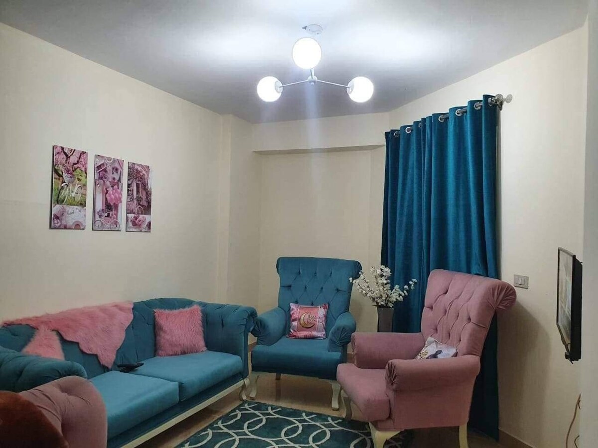 Bilik hotel dan studio keluarga yang lengkap pada tahap tertinggi untuk menyediakan keselesaan, keseronokan dan keselamatan yang tinggi untuk anda dan keluarga anda, dan hanya 25 km dari Terowong Martyr Ahmed Hamdi, hanya sejam setengah dari Kaherah