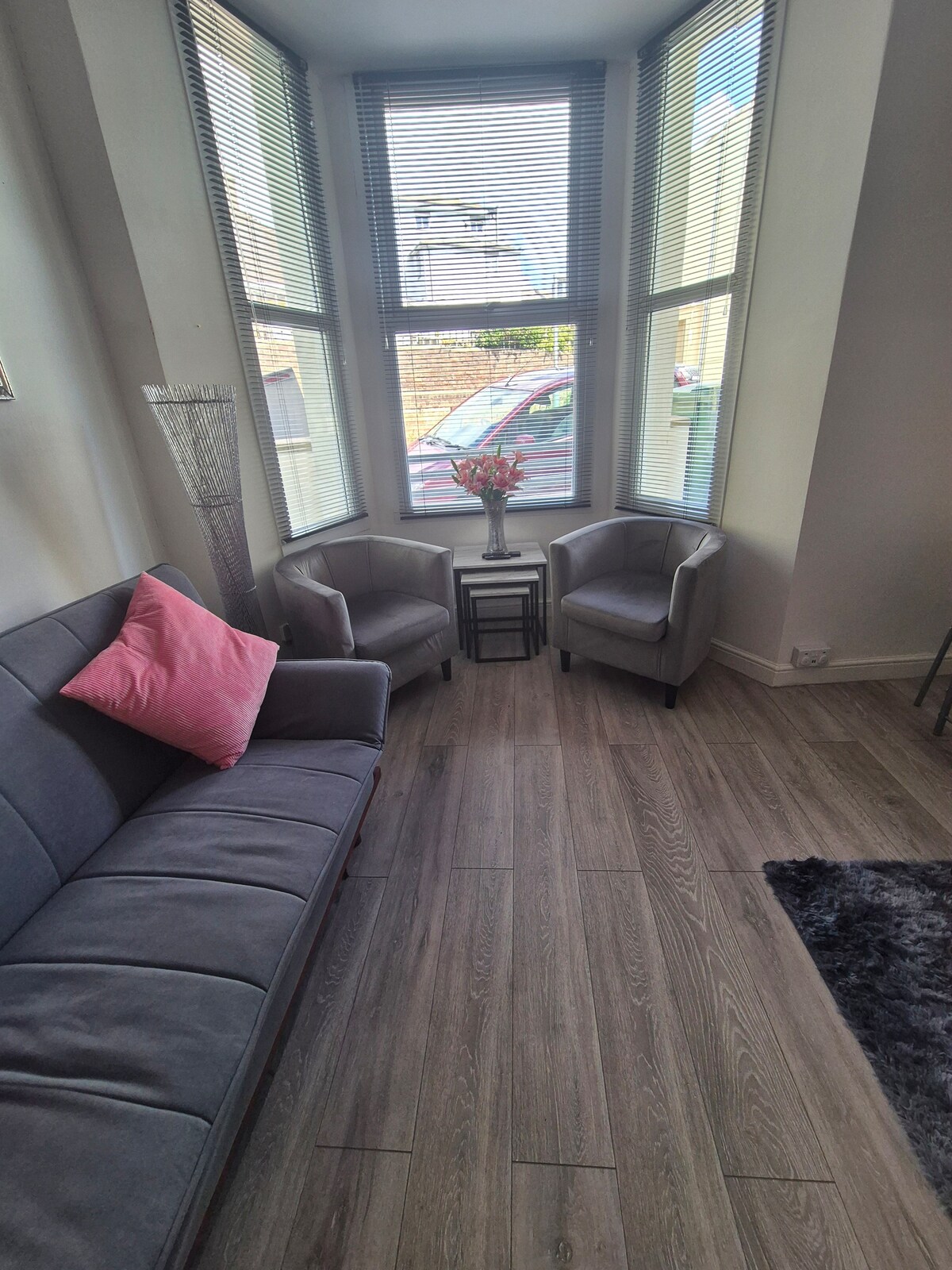 A deceptively spacious terrace cottage with a calm and inviting interior. Situated on a quiet residential road, opposite the old tram line. 5 minutes walk from Folkestone's Harbour and sandy Sunny Sands beach and less than a 10 minute walk to the Creative Quarter, charming cobbled Old High Street and all that Folkestone has to offer. Ideally placed to explore the many local coastal paths and various Kent attractions such as Port Lympne zoo too.