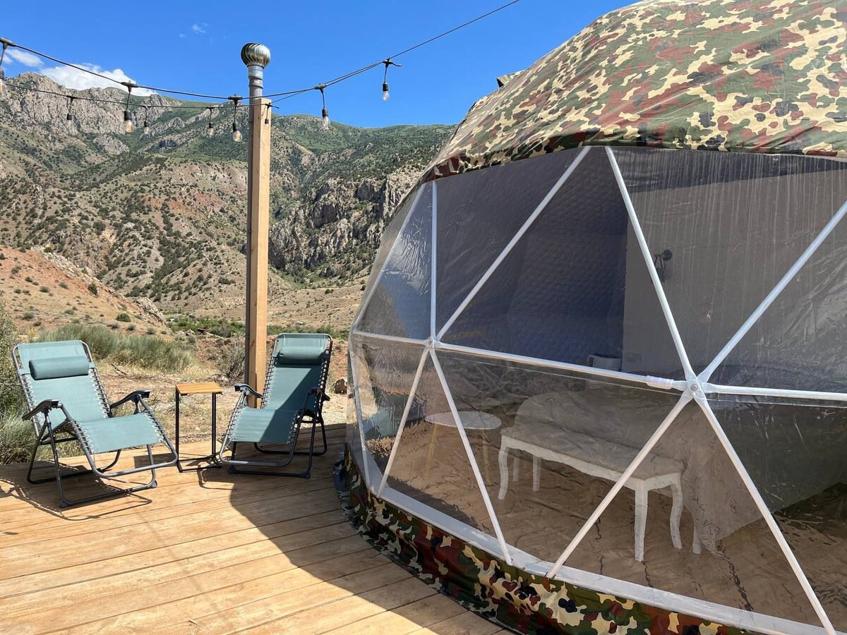 Pergi ke tapak perkhemahan mewah kami yang selesa di tengah-tengah Armenia, dengan pemandangan Gunung Ararat yang menakjubkan. Menginap di salah satu daripada 3 khemah safari bergaya kami dan berehat di tab mandi air panas luar atau banya wap panorama. Untuk pengalaman yang benar-benar unik, nikmati ritual rumah mandi tradisional dengan atendan pakar kami. Ketenangan, alam semula jadi dan keselesaan menanti.