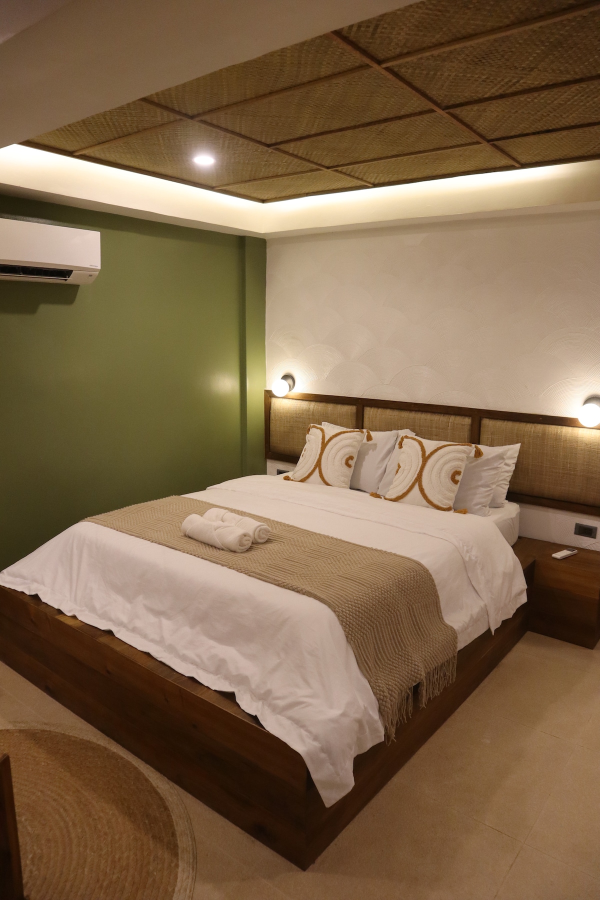A peaceful room in Catangnan with a queen-size bed, private bathroom with hot shower, private patio or balcony, A/C, ceiling fan, small fridge, safety box, kettle, and hair dryer. Surrounded by greenery, the space offers comfort while keeping you close to Siargao’s top spots. Cloud 9 and General Luna are just a short ride away. Stay connected with Solar power and Starlink Wi-Fi, as well as a generator available during power outages. Your calm and cozy base for exploring Siargao Island.