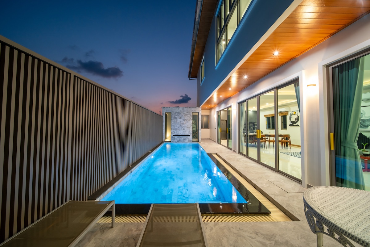 Alami kemewahan di vila 3 bilik tidur baharu kami, yang menampilkan kolam renang air masin persendirian yang menakjubkan, dilengkapi dengan kawasan pantai yang sesuai untuk kanak-kanak. Terletak hanya 5 minit dari Pantai Rawai dan Nai Harn, vila moden ini terletak di kediaman persendirian dan tenang yang berhampiran dengan kedai-kedai, di mana anda boleh menemui restoran, pasar raya dan perkhidmatan urut. Sesuai untuk keluarga atau rakan-rakan yang mencari ketenangan, ia menawarkan gabungan kemewahan dan kemudahan yang lancar.