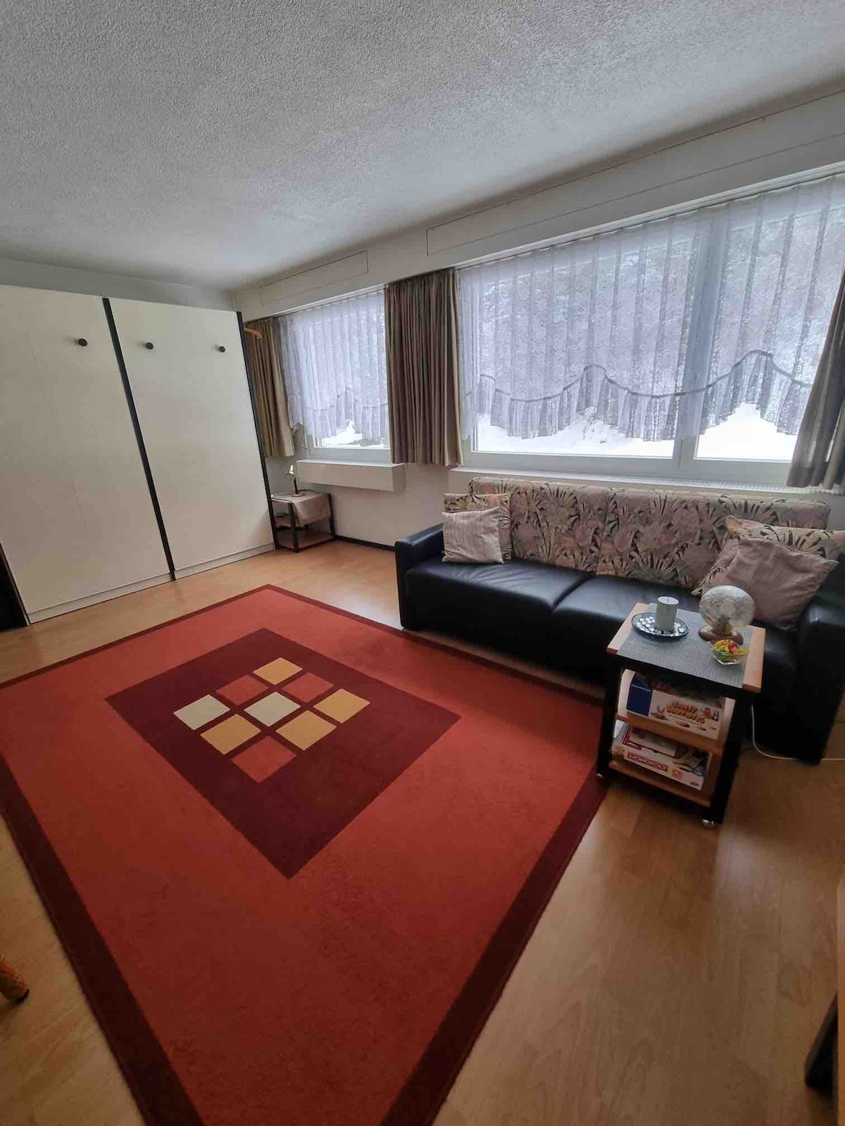 Studio moden di Laax dengan pemandangan gunung, jarak berjalan kaki ke lif ski. Katil king saiz premium (180×200), katil sofa, TV Pintar Samsung 50”, Wi-Fi laju dan dapur yang serba lengkap (ketuhar, dapur gas, mesin basuh pinggan mangkuk, Nespresso). Balkoni cerah dengan pencahayaan yang boleh diredupkan. Kolam renang bangunan & sauna (apabila dibuka). Tempat letak kereta persendirian luar percuma, pengecasan EV persendirian, Kad Tetamu disertakan. Tasik renang berdekatan (kemasukan percuma) dan lereng ski kanak-kanak percuma. Sesuai untuk bermain ski, mendaki dan berehat di Pergunungan Alps.