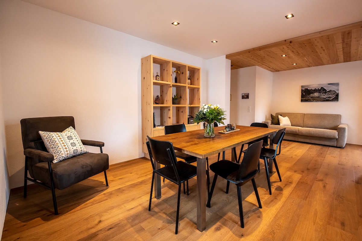 Bersantai di Rifugio unik ini. Pada tahun 2020 apartmen 2 1/2 bilik yang diubahsuai sepenuhnya, yang reka bentuk dalaman telah direka semula sepenuhnya. Dibina sebagai loteng dengan bahan terbaik (Valser Granit, parquet istana, banyak kayu vintaj, tab mandi bebas, pendiangan besi terbuka di dua sisi, lekapan reka bentuk). Dengan tempat duduk taman dan taman yang dilindungi. Lokasi yang cerah dan tenang. Pintu masuk rumah persendirian, sauna di dalam lampiran. Ski masuk, ski keluar atau bas ski boleh dicapai dalam masa tiga minit.