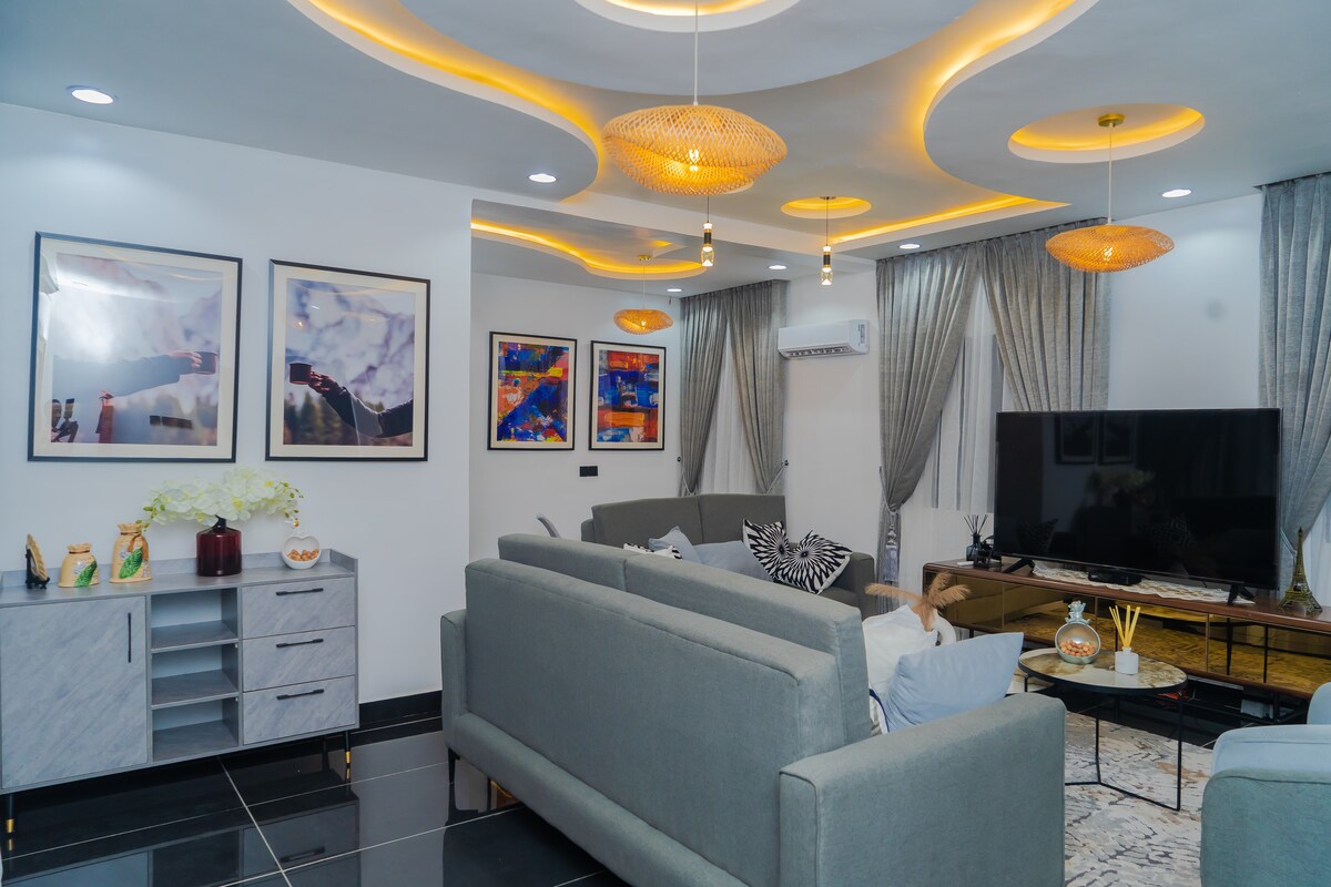 Nikmati penginapan yang halus di mana keselesaan, fungsi, dan sentuhan gabungan mewah dengan lancar. Luas namun selesa, bergaya namun praktikal, syurga yang terletak di tengah-tengah tenaga Lagos yang meriah ini menawarkan segala-galanya untuk penginapan yang santai. Sama ada untuk bekerja atau bercuti, anda akan menyukai keseimbangan kemudahan dan keanggunan yang bersahaja. Hanya 15 minit dari MMIA, 20 minit ke Ikoyi-sering lebih cepat daripada dari Lekki.