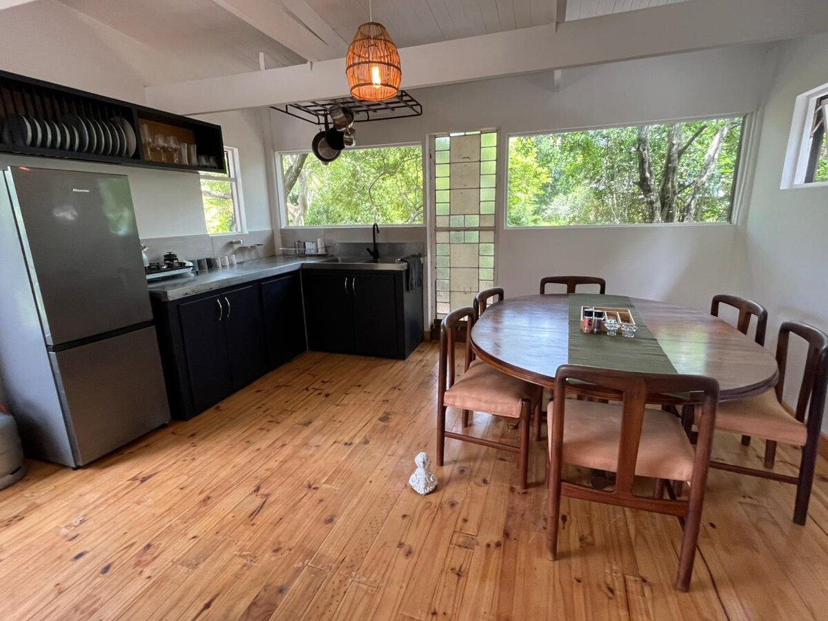 Terletak di dalam Lembah Hermitage yang subur di luar Swellendam, EcoTreehouse adalah kabin luar bandar yang tenang yang direka untuk keselesaan, kesederhanaan, dan hubungan dengan alam semula jadi. Ia sesuai untuk pasangan, pengembara solo, atau keluarga kecil yang ingin bersantai tanpa menjejaskan keselesaan. Bangun dengan pemandangan gunung, tidur dengan bunyi katak, dan berendam di bawah bintang-bintang di tab mandi air panas kayu api peribadi anda. Berenang, menatap bintang, bersiar-siar di denai, atau bertemu kuda — tanah ini menjemput anda untuk bersantai.