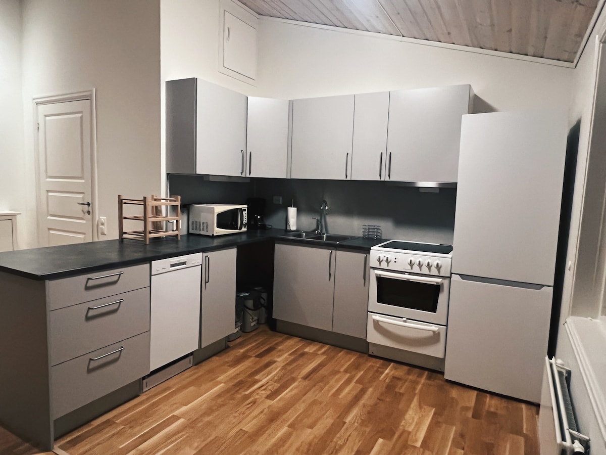 Apartmen moden dengan ruang tamu yang sangat luas dan tingkap besar untuk menikmati panorama Artik. Ia mempunyai dua bilik tidur dan sofa tidur di ruang tamu dan boleh menampung dengan selesa sehingga 6 tetamu oleh 2 orang di setiap bilik. Ia mempunyai semua yang anda perlukan untuk berasa seperti di rumah dan menikmati malam yang selesa selepas hari yang penuh dengan pengembaraan. Apartmen ini terletak kira-kira 600 m menanjak dari pusat bandar, oleh itu jika mengembara dengan bagasi, mengambil teksi dari/ke lapangan terbang sangat disyorkan.