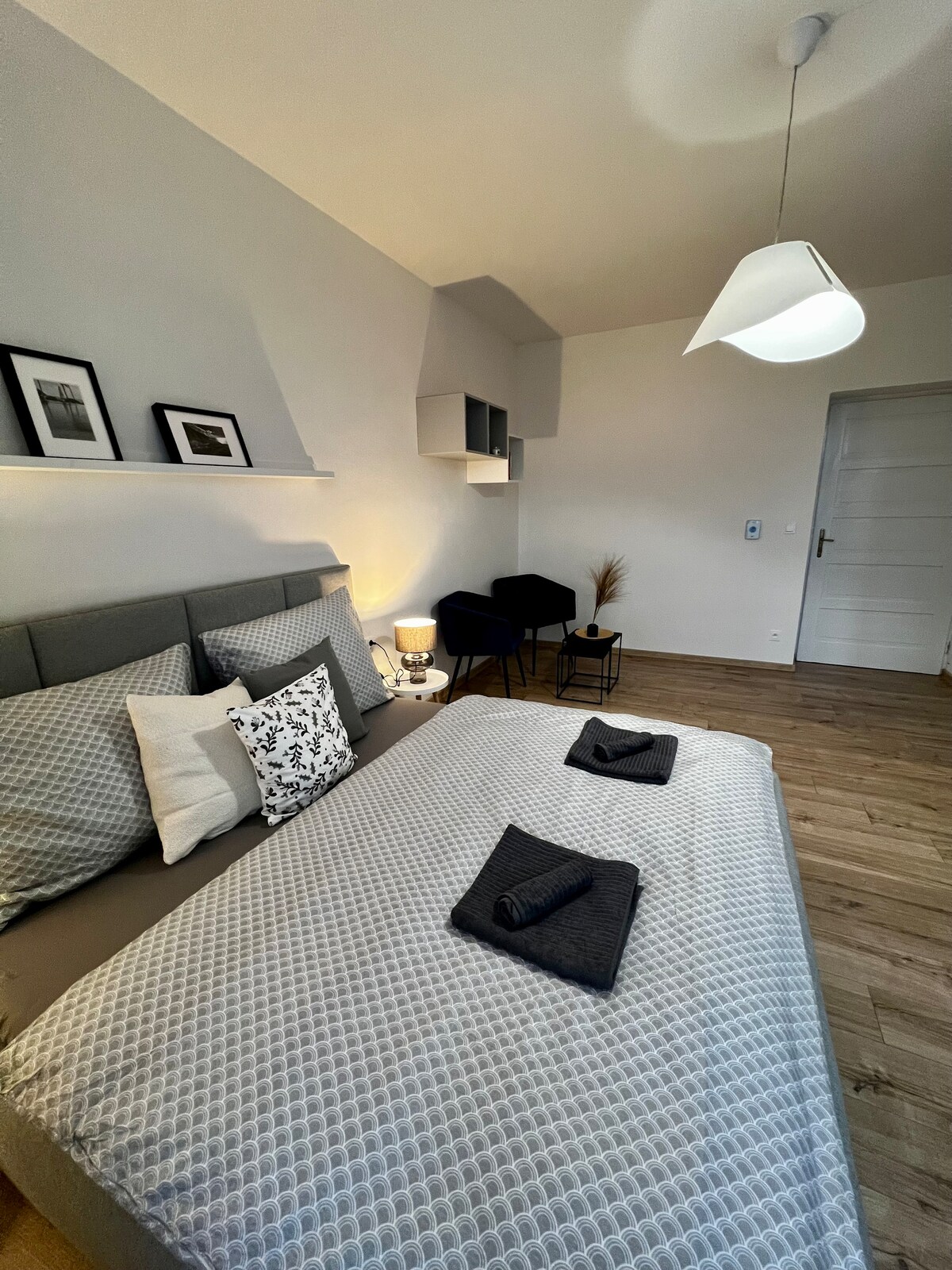 Apartmen dupleks mewah baharu 12 dengan teres besar baharu, pemandangan Olomouc dan mandian urut. Apartmen terletak tidak jauh dari pusat bandar.. betul-betul di sebelah Flora Park. Perhentian pengangkutan awam Wolkerova dan pasar Penny 100m. Di tingkat bawah terdapat bilik mandi dengan tab mandi urut, ruang tamu dengan dapur . Di tingkat dua terdapat bilik tidur yang selesa dengan pendiangan elektrik. Kelemahannya ialah tingkat 5 tanpa lif..
