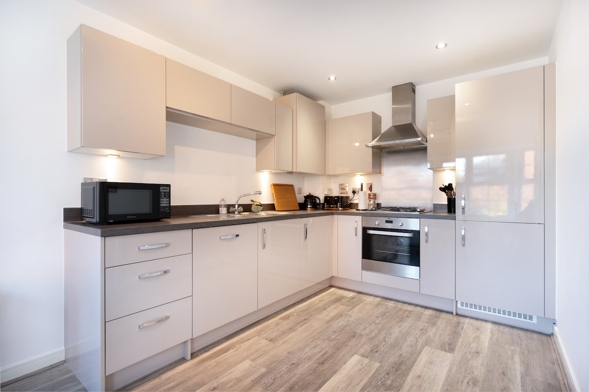 Apartmen satu bilik tidur yang baru dipasang, dengan ruang tamu, dapur penuh, bilik tidur besar dengan katil saiz raja, katil bujang saiz penuh di atas bumbung, dan katil bujang tambahan jika perlu. Kami telah menyediakan Brickmaker 's Loft dengan segala yang anda perlukan. Dapur ini mempunyai ketuhar, peti sejuk, mesin basuh pinggan mangkuk, cerek, pembakar roti, microwave dan semua bit memasak biasa, pinggan mangkuk dll. Bilik mandi mempunyai pancuran mandian, tandas, dan singki, dan mesin basuh jika memerlukannya. Bilik tidur adalah ruang santai yang indah.