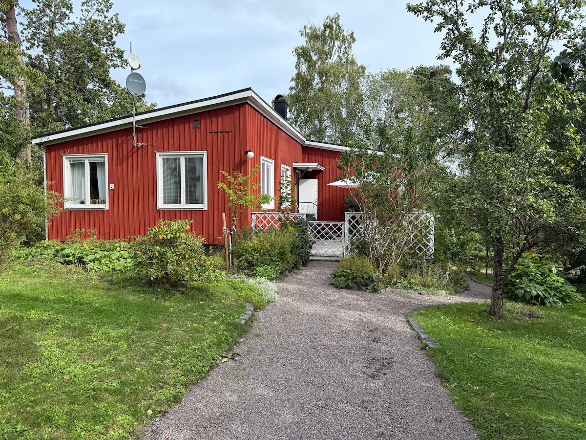Selamat datang untuk menyewa kotej kami yang sesuai untuk 2 orang dewasa dan mungkin 1-2 kanak-kanak. Kotej ini mempunyai teres yang besar dengan pemandangan tasik yang hebat dan matahari terbenam yang hebat. Ia terletak dalam masa 20 minit berjalan kaki dari pusat bandar Sigtuna. Pantai kecil dan jeti bot untuk digunakan dalam jarak 70 meter dari kotej. Bilik mandi peribadi anda dengan pancuran mandi tidak terletak di kotej. Ia berjarak 10 langkah di ruang bawah tanah rumah utama kami. Anda mempunyai pintu anda sendiri dan datang dan pergi mengikut kemahuan anda.