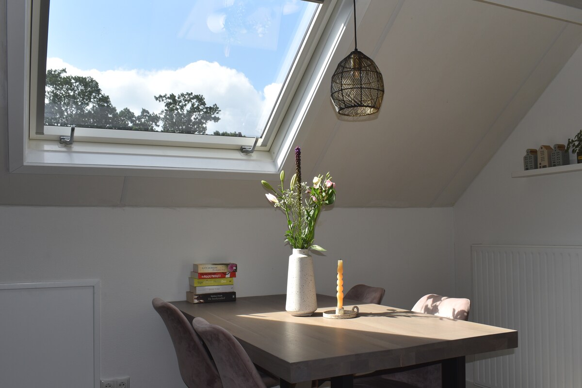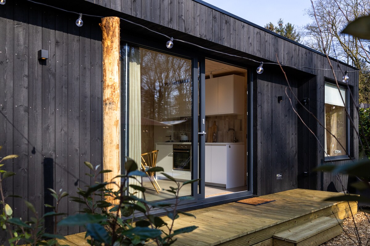 A stylish cabin dream! This studio looks out into the woods, from an elevation of 1,5 metres, is part of a family estate, & sits at 60m away from the road to the village of Vierhouten. It's not a simple holiday let, but rather a luxurious and comfortable zen suite with a stunning view. With vast woods and heather on your doorstep, one of the most beautiful of the Veluwe region if not The Netherlands. Endless magical forests with a special kind. A four season dream location.