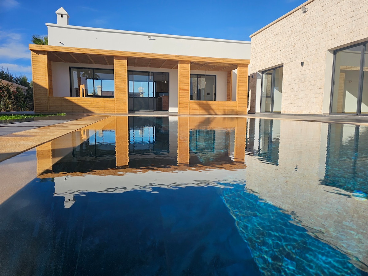 Charming Family Villa, 2levels, independent, spacious, well illuminated, a big private pool of 75m² and a beautiful garden. Located on the countryside, 16km from Essaouira on Sidi Kaouki rd, it has a luxurious finish, chimney, open fire place in the garden, olive and fruit trees and two beautiful Terraces with pergolas. Modern and peaceful. Airport at 6.5km and shops and a supermarket at 10min. You will need a vehicle to get around.