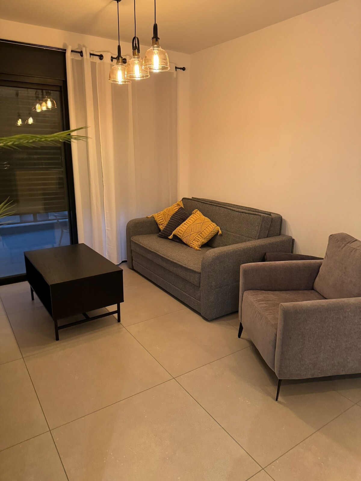 Garden apartment in the Palamora Eilat complex,two bedrooms and a living room, each bedroom has a double bed, and in the living room there is a sofa bed for a double bed, and a sofa bed for a single bed,space for seven people, the complex is very close to the mall facing the sea, and 100 meters from the beach, in addition there is a huge pool in the complex, and keeping 24 hours, the apartment is located 50 meters from the beach, close to the mall by the sea, and the beach of Kisky