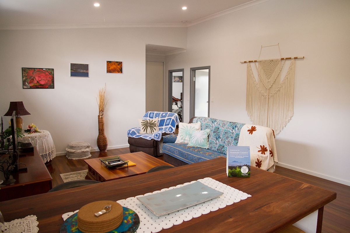 A quiet place, on a bush block, on the edge of the National Park. The guest suite is part of our home & is suitable for singles & couples. The Granite Skywalk & other tracks, are not far away. There are local food outlets and winery's that are open on limited days. Mt Barker is 25 klm away and a good place for food and fuel. The Internet & Television is via Satillite. Telstra Mobile, has the best coverage. Bluff Knoll & Albany are both 40 klm away. We can provide milk on request.
