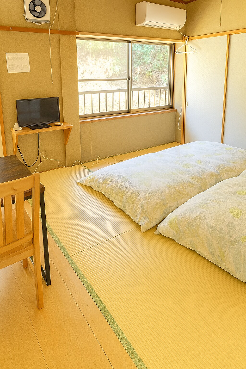 Asrama KOKOROZASHI hanya 5 minit berjalan kaki dari stesen Shingu. Ia boleh menampung hingga 4 buah futon Jepun tunggal. Bilik ini adalah TATAMI Jepun. Ruang tamu, tandas, bilik mandi, mesin basuh, ketuhar gelombang mikro, pemanas memasak IH, peti sejuk, TV dan Wi-Fi dikongsi dengan orang lain. Kami pasti anda menikmati masa santai. 志こころざしホステルは新宮駅から徒歩約5分です。畳部屋は6畳で4名様まで宿泊可能です。トイレ、キッチン、バスルーム、リビングルームは他の客と共有になります。
