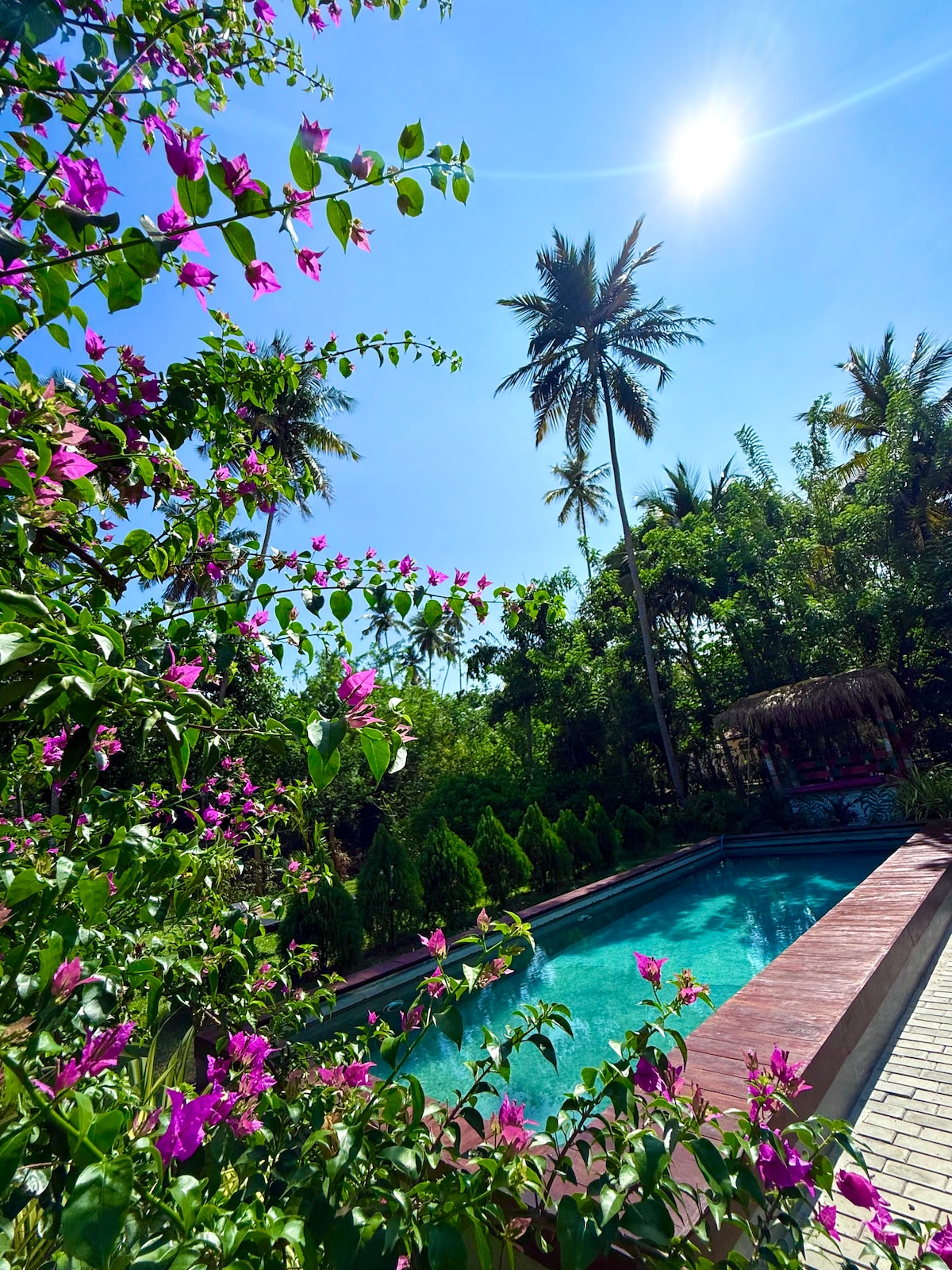 Hanya berjalan kaki sebentar dari bandar Ahangama yang sibuk—tempat kafe yang meriah dan tempat meluncur terkenal di dunia—terletak Sunshine Stories Retreat kami. Banglo ini baru dibina, bergaya dan bergaya, direka dengan mengambil kira keselesaan. Langkah keluar ke kolam renang 45 kaki di depan pintu anda, dikelilingi oleh hutan hijau yang subur untuk percutian yang tenang.