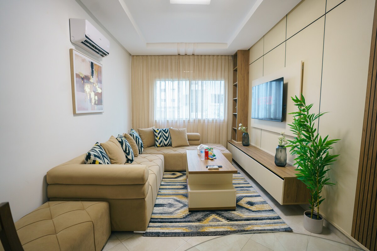 Ashraf Home offers an exceptional luxury stay in a modern and refined apartment within secure residence with a private ParkinG. Appart Recently renovated and tastefully furnished, it delivers premium comfort, Wi-Fi🛜,Ideally located, close to Beach shops and coffees, 8 minutes from the Airport, 2 min from the Grand Stadium, 5 min from Achakar Beach🌊and 11 min from the city center. new furniture, two spacious living rooms, a fully equipped kitchen, Bathroom and two elegant bedrooms, Book now☺️🎉