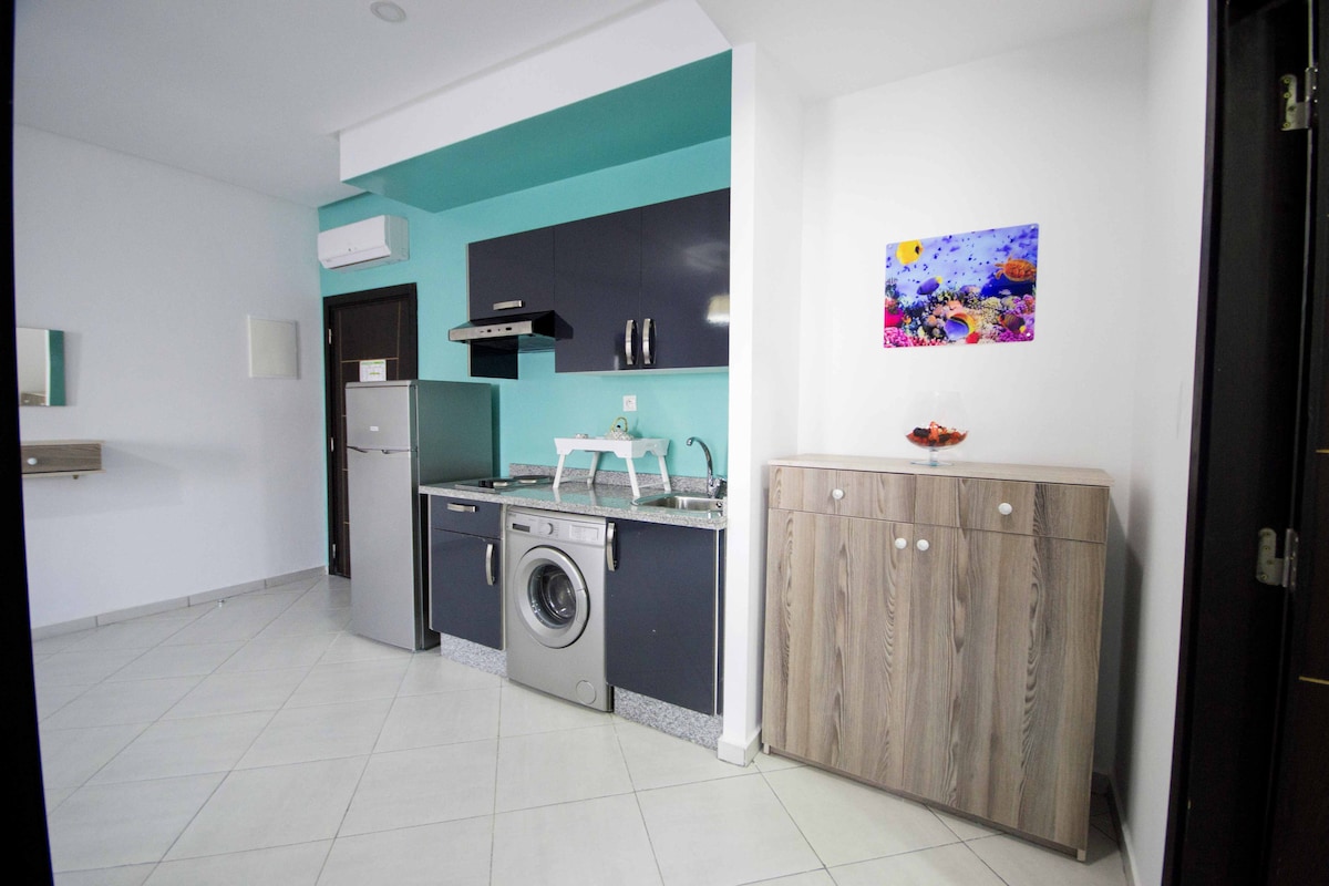 Apartmen ini terdiri daripada 2 bilik tidur yang dekat dengan semua tempat menarik dan kemudahan. - 3 minit berjalan kaki dari pantai. - 1 minit berjalan kaki dari corniche. -10 minit berjalan kaki ke stesen TGV dan City Mall Tangier. -THEbuilding selamat 24/7(kamera di pintu masuk dan pekerja rencam) . - Tempat letak kenderaan percuma disediakan di lokasi. - Kolam renang di luar bangunan ini berjarak 5 minit berjalan kaki. - Kolam renang dibuka pada bulan Julai dan Ogos. - Kolam renang boleh diakses oleh semua. Berenang percuma untuk 4 orang, kemudian 40 DH/orang tambahan.