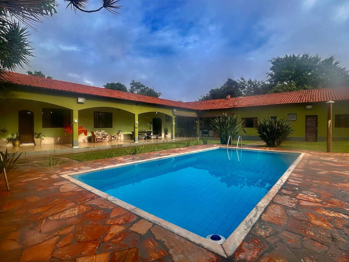 Perhatian: Minimum dua malam untuk tempahan. Rumah ini mempunyai 3 bilik tidur , 2 dengan dua katil double di setiap bilik, bilik tidur lain berada di kawasan gourmet, dapur LENGKAP, ruang tamu, bilik mandi. Meja makan. Kawasan Gourmet Pemanggang BBQ dengan dapur kayu, kolam renang , Expositor freezer. Ia mempunyai bilik tidur dengan suite dengan 1 katil double yang selesa dan bar mini. Ruang Rumah sangat selesa dan berdekatan dengan Jaboticatubas. Perhatikan Wifi Fiber 100 Mb, buaian rajut dan banyak kawasan hijau dengan pula pula untuk kanak-kanak.