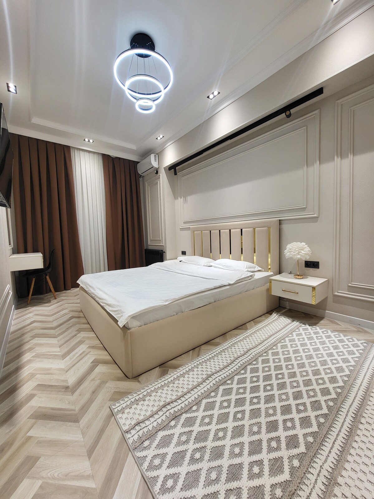 Абсолютно новые и уютные аппартаменты, для спокойного отдыха. Находится в центре Ташкента, недалеко от международного аэропорта. Самый востребованный район для иностранных гостей, так как в шаговой доступности имеются много ресторанов с различными национальным кухнями. Много мест для развлечения, рынки и прогулочные зоны, парки и т.д. В квартире имеется все необходимое, для комфортного проживания. Имеется спальня с двухместной кроватью и раскладной диван (полноценный двухместный).