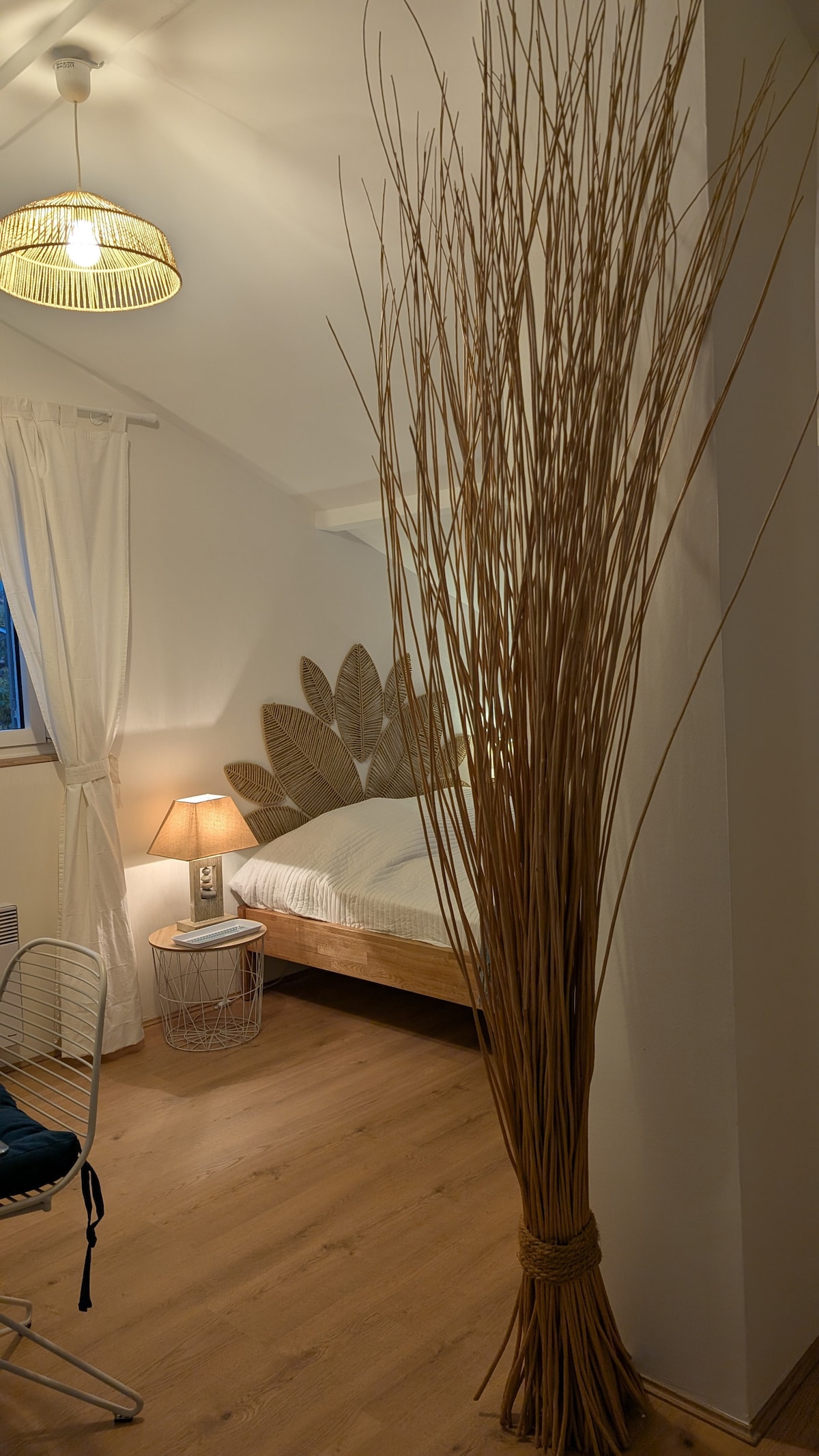 Bersebelahan dengan rumah keluarga kami, studio dupleks bebas dengan bilik tidur besar (kemungkinan untuk membuat 1 katil double atau 2 katil single: untuk dinyatakan), dapur dan bilik mandi yang cantik, sangat cerah menghadap ke selatan, tenang. 2 minit dari perhentian bas untuk pusat Lyon dan 5 minit dari pusat bandar untuk kampus Ecully, 10 minit dari Ecully atau Lyon dengan kereta. Parkir tepi jalan percuma PERHATIAN: tangga sempit tidak sesuai untuk orang yang mempunyai bangunan tinggi