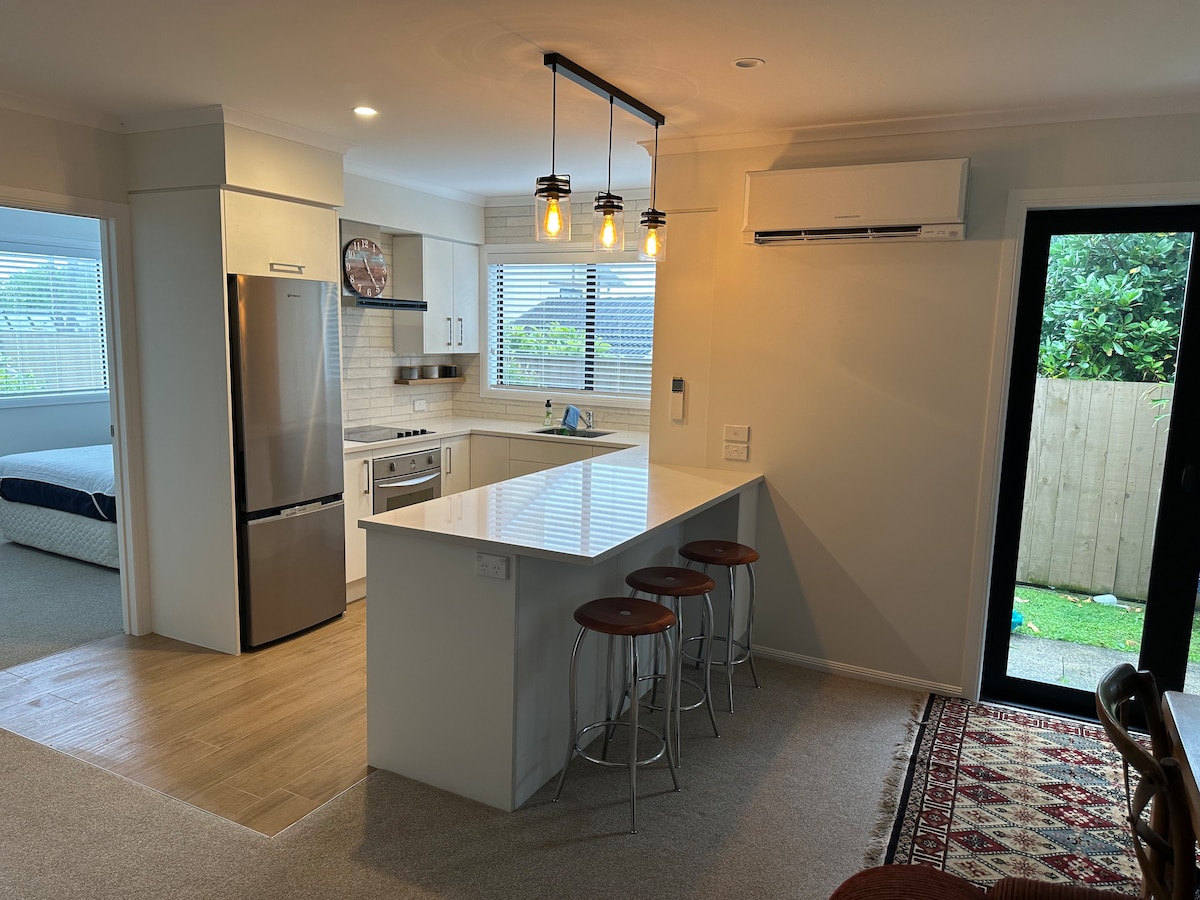 Suite yang tenang dan lengkap di Matua berhampiran Tauranga CBD dan Mount Maunganui. Daftar masuk sendiri. Sesuai untuk kontraktor, pengembara korporat dan pasangan. Penginapan persendirian di tingkat bawah dengan dapur lengkap, bilik tidur berasingan dan ruang kerja. Pintu masuk, tempat letak kereta dan kawasan BBQ luar sendiri. Berdekatan dengan laluan pejalan kaki pelabuhan, pantai dan laluan basikal. Kafe, restoran dan kedai makanan bawa pulang berdekatan. Wi-Fi pantas dan Netflix disediakan. Penginapan jangka panjang tersedia.