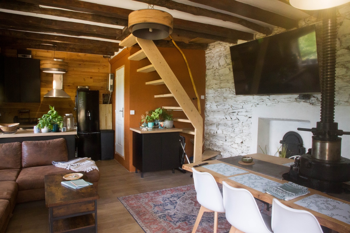 Kotej selesa di Hauts Cantons de l'Herault, Datang dan tenangkan diri anda di Banissou dan di kaki Châtaigneraies, di Secadou lama ini yang telah diubah suami saya dengan teliti! Terletak di sebuah kampung kecil yang tidak mempunyai jalan masuk lain dan tidak ada lalu lintas (Cours-le-Haut), tempat yang benar-benar tenang, sesuai untuk pendaki dari pintu, untuk memerhati hidupan liar (mouflon, rama-rama, burung pemangsa) dan berhubung semula dengan perkara penting. Teres teduh, buku tersedia, wifi, sungai di bawah... tempat yang benar-benar menenangkan!☮️