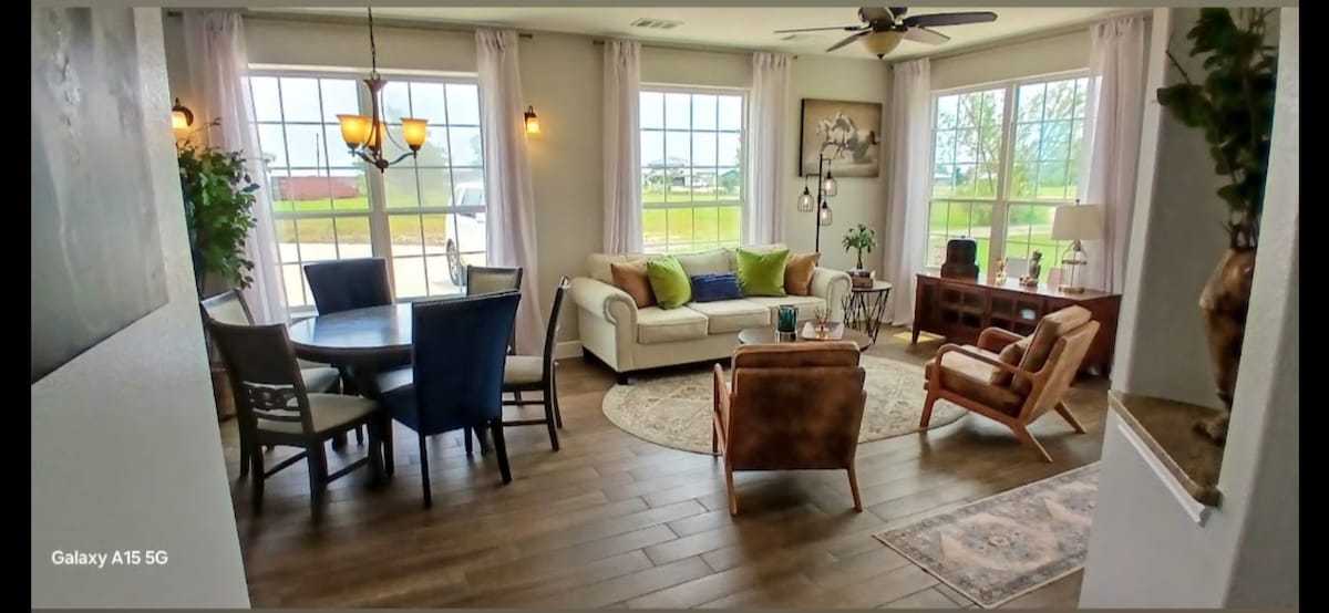 Berehat dan pulihkan tenaga dalam ketenangan di "The Regina House". Tempat percutian yang luas dan tenang yang direka untuk perniagaan dan keseronokan. Nikmati pelan lantai terbuka yang lancar yang menghubungkan dapur, ruang makan dan ruang tamu. Moden, selesa dan tenang, sesuai untuk berehat. Terletak dengan mudah hanya 2 batu dari Samsung, 5 batu ke Pusat Bandar Taylor, 11 batu ke Round Rock Premium Outlets, 27 batu ke Tesla Giga, 32 batu ke Lapangan Terbang Austin & 11 batu ke Dell Diamond & Kalahari. Percutian damai anda menanti!