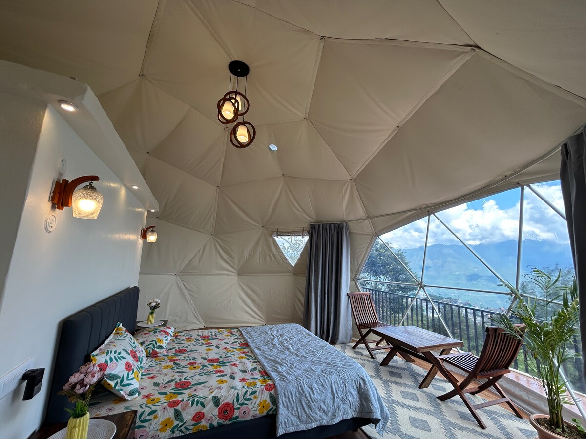 Alami penginapan unik di kubah geodesik kami yang menghadap Himalaya dan Tasik Tehri yang megah. Bangun dengan pemandangan gunung panorama, menatap bintang di langit malam, dan nikmati gabungan keselesaan dan alam semula jadi yang sempurna. Kubah ini menampilkan katil queen yang selesa, bilik mandi moden, dan dapur kompak untuk kemudahan anda. Bersantai di tepi unggun api, jelajahi denai yang indah, atau berehat di udara gunung yang segar—percutian yang tidak dapat dilupakan di Tehri menanti!