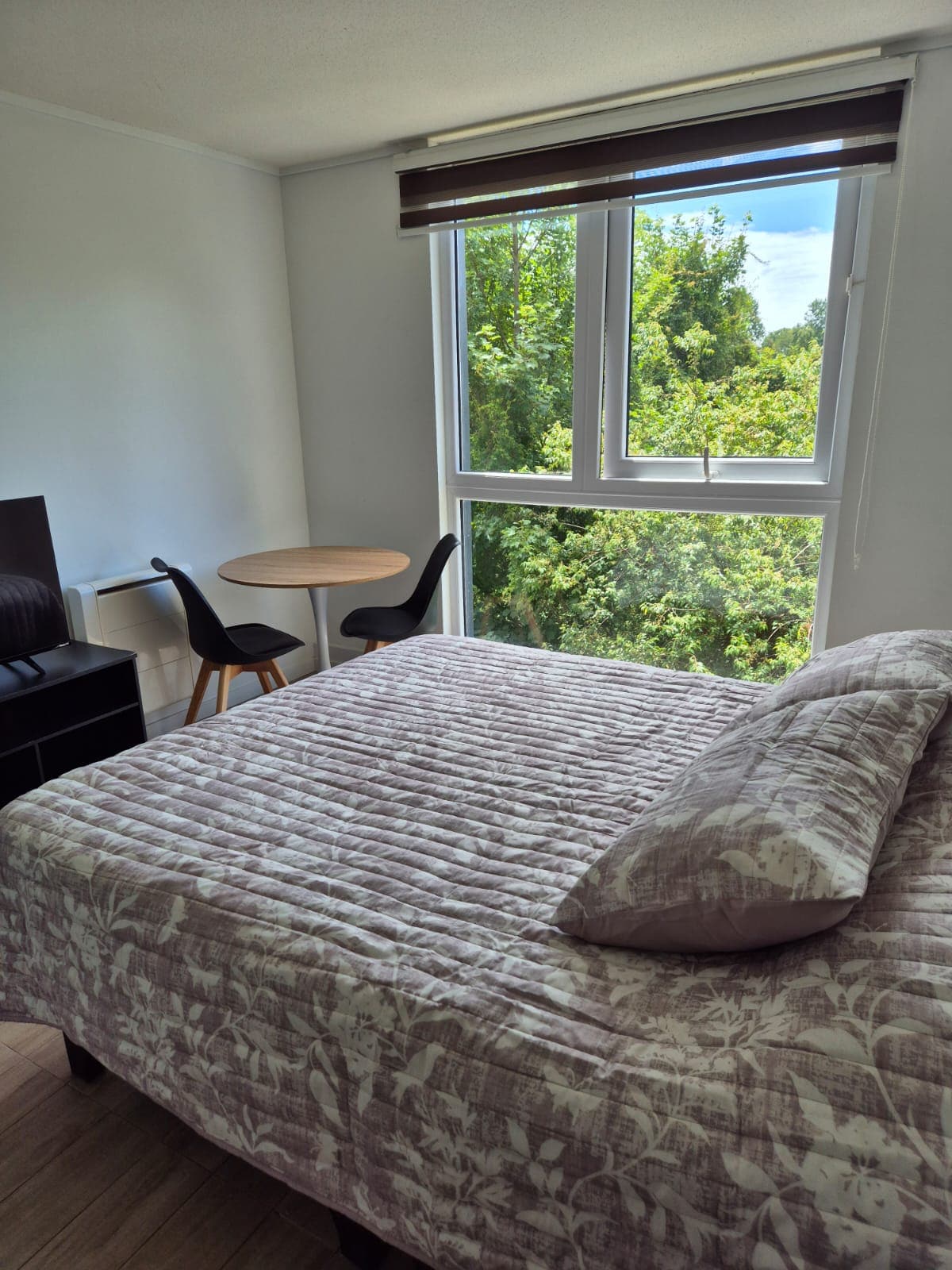 Nikmati keselesaan dan gaya di apartmen yang serba lengkap ini, terletak strategik dengan akses kepada Av. Picarte dan Costanera, hanya beberapa minit dari pusat bandar Valdivia. - Ruang makan. - Dapur lengkap: ketuhar elektrik, hud, ketuhar gelombang mikro, mesin basuh pinggan mangkuk, peti sejuk, cerek, pembakar roti, pembuat kopi dan pengisar. - Bilik mandi dengan pemanas elektrik, seterika, pengering rambut dan tuala - Bilik tidur dengan katil double. - Terrace - WiFi 800mbps - Tempat letak kereta berbumbung di dalam bangunan.