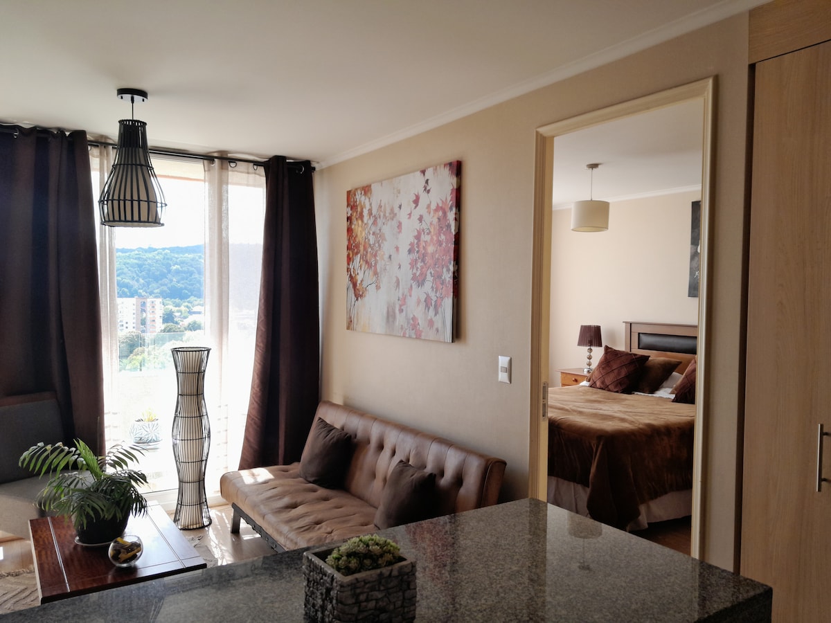 Apartmen moden di sektor premium Temuco dengan WiFi dan tempat letak kereta