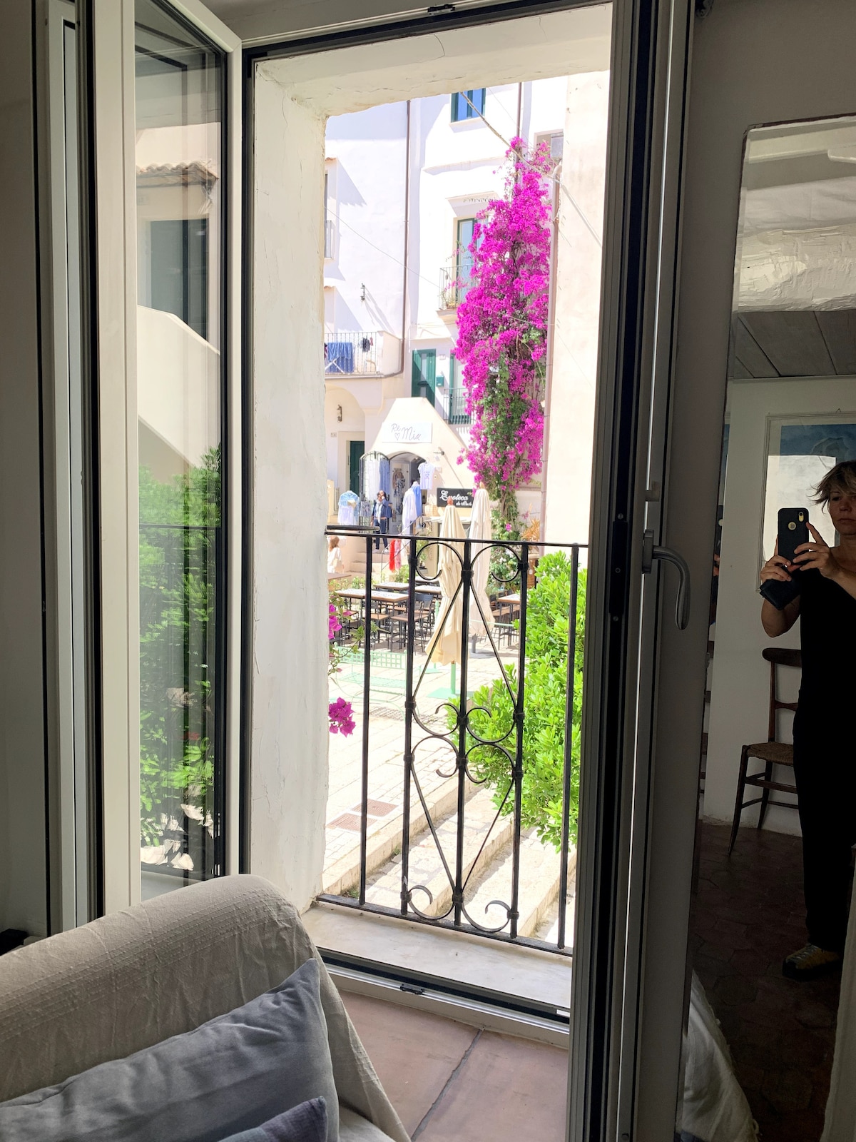 Penthouse yang cerah dan lapang ini mempunyai dua teres panorama yang besar, satu dengan akses pintu dari ruang tamu dan juga dari salah satu bilik tidur, dan satu lagi, bumbung besar yang dicapai dengan tangga lingkaran yang sesuai untuk parti atau resepsi. Kedua-dua teres menawarkan pemandangan pergunungan, seluruh Teluk Serapo dan bandar zaman pertengahan. Terletak tinggi di atas jalan-jalan utama Gaeta, apartmen ini tenang dan berangin, tetapi dalam jarak berjalan kaki ke semua bandar yang ditawarkan