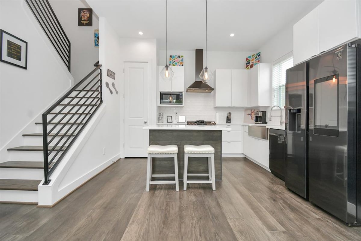 Alami kemewahan di rumah bandar Houston ini dengan 3 bilik tidur, masing-masing dengan bilik mandi/TV persendirian. Rumah pintar ini mempunyai kunci automatik, lampu, vakum dan termostat. Tingkat 2 ialah ruang berkonsep terbuka dengan dapur, ruang makan dan ruang tamu yang menampilkan TV Samsung 85", meja biliard, permainan papan dan bar mini. Terdapat stesen kerja kecil di bilik tidur tingkat bawah dan ruang pejabat dengan persediaan kerja penuh. Nikmati kawasan tempat duduk belakang rumah. Terletak di bawah 5 batu dari Stadium NRG dan Minute Maid Park.