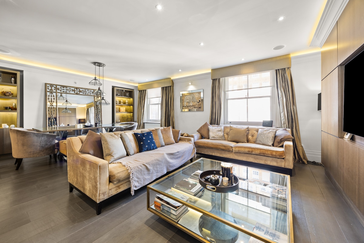 Apartmen dua bilik tidur mewah dalam blok Mayfair tempoh yang disenaraikan, beberapa saat dari Piccadilly dan ruang terbuka Green Park dan tiub. Penginapan ini terletak di tingkat dua dengan lif dan mendapat manfaat daripada tingkap besar yang menawarkan cahaya yang sangat baik. Apartmen ini terdiri daripada dewan masuk, ruang tamu/ruang makan besar yang menghadap Green Park dengan TV Pintar yang dipasang di dinding, dua bilik tidur kelamin, dapur lengkap dengan semua peralatan dan bilik mandi marmar.
