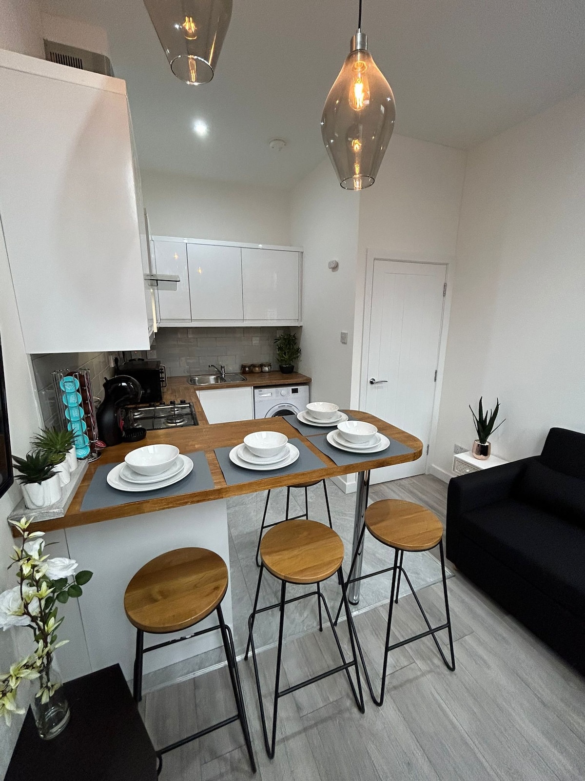 This Modern and Stylish 1-BR flat is perfect for up to 4 guests and is situated in Zone 1. It is only a 5-minute walk from Elephant & Castle tube stations, just 3 Stops to Big Ben, and 5 stops from Picadilly Circus! It features a spacious living area with a sofa-bed, chairs, a desk with a monitor and a Smart TV, a well-equipped open kitchen with a Nespresso machine, a bathroom with a bathtub, a separate bedroom with a UK Double-size bed, and ample storage space. Say goodbye to slow WiFi!